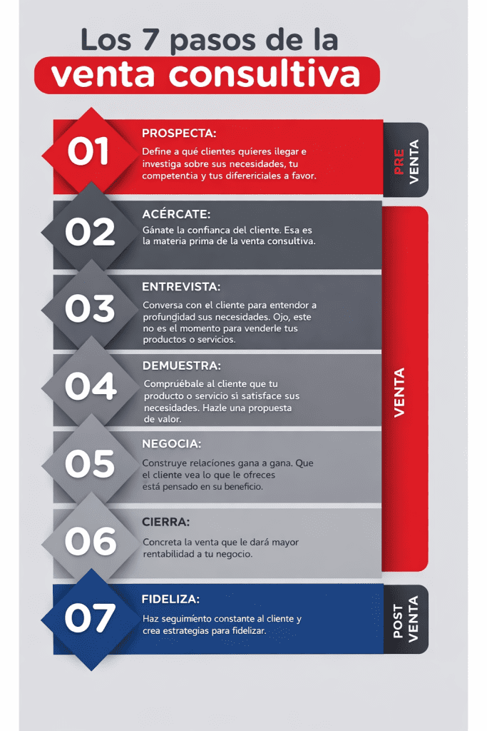 El vendedor deja de ser un “ofertador” y se convierte en un consultor de negocio que ayuda al cliente a: